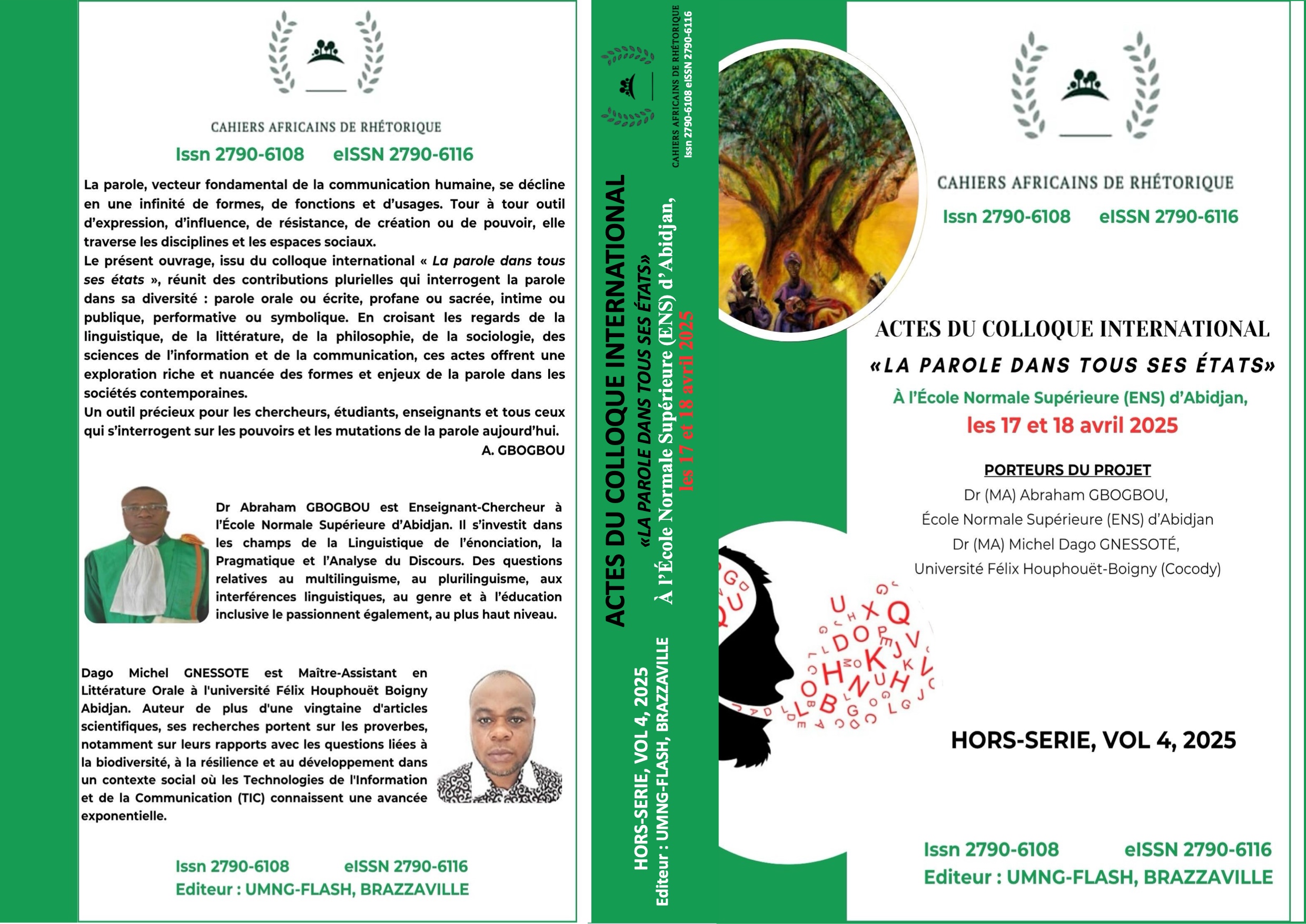La parole, vecteur fondamental de la communication humaine, se décline en une infinité de formes, de fonctions et d'usages. Tour à tour outil d'expression, d'influence, de résistance, de création ou de pouvoir, elle traverse les disciplines et les espaces sociaux. Le présent ouvrage, issu du colloque international « La parole dans tous ses états », réunit des contributions plurielles qui interrogent la parole dans sa diversité : parole orale ou écrite, profane ou sacrée, intime ou publique, performative ou symbolique. En croisant les regards de la linguistique, de la littérature, de la philosophie, de la sociologie, des sciences de l'information et de la communication, ces actes offrent une exploration riche et nuancée des formes et enjeux de la parole dans les sociétés contemporaines. Un outil précieux pour les chercheurs, étudiants, enseignants et tous ceux qui s'interrogent sur les pouvoirs et les mutations de la parole aujourd'hui. A. GBOGBOU
